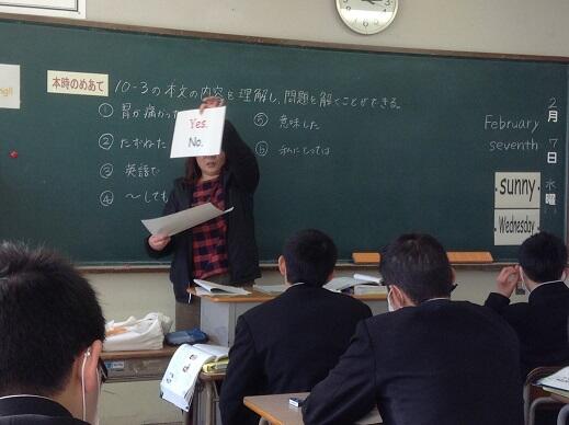 尾﨑教諭が2年生で英語の研究授業を行いました。