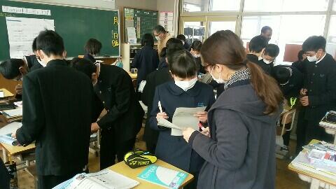 鈴木教諭が3年理科の研究授業をおこないました。延岡市中学校理科部会の研究授業も兼ねていて多くの先生方が参観に来られていました。