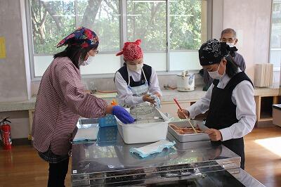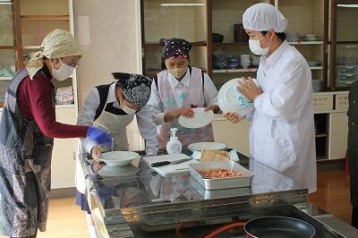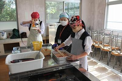 本日の3・4校時は1年1組7組の家庭科の調理実習でした。はげまし隊の皆様も支援していただいて、生姜焼き、サラダなどを作りました。アドバイスをいただきながら、調理を楽しんでいました。おいしい生姜焼きが完成しました。