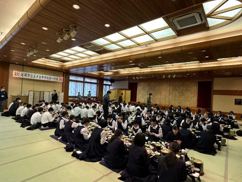 修学旅行2日目の夕食の様子です。美味しい料理に箸が進みました。このまま全員で、最高の修学旅行にしたいです。