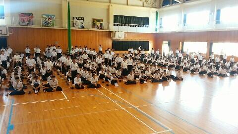 校長先生の話の後に、校歌を斉唱しました。体育大会もすぐにやってきます。大きな校歌で盛り上げて欲しいと思います。