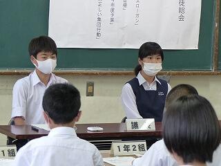 5月14日(金)の午後、「令和3年度 生徒総会」を実施しました。昨年度と同じく、感染症対策のため、代表生徒のみの縮小開催となりましたが、各学級の代表と生徒会役員が責任をもって積極的な討議を行いました。