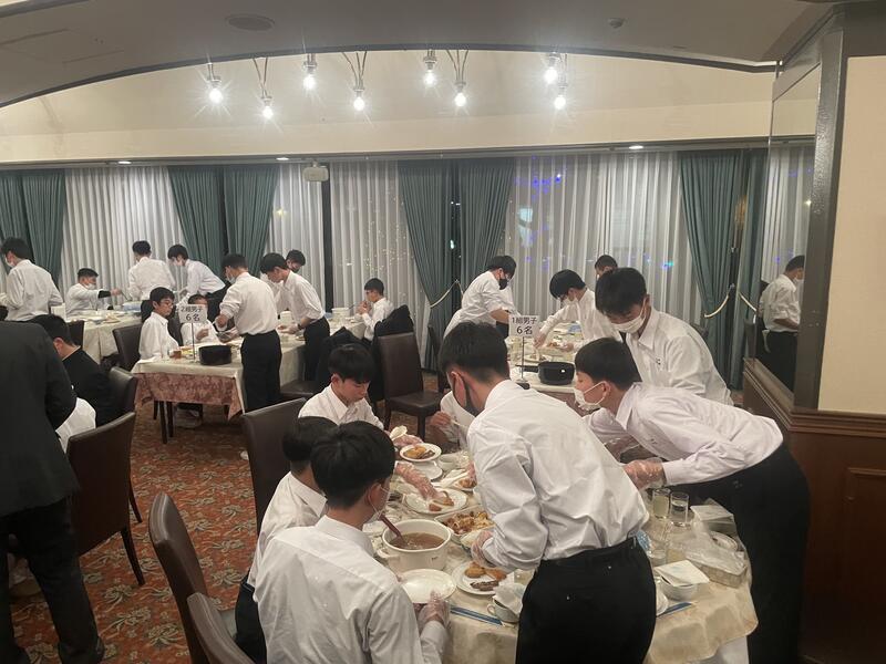 修学旅行2日目の夕食の様子です。美味しい料理に箸が進みました。このまま全員で、最高の修学旅行にしたいです。