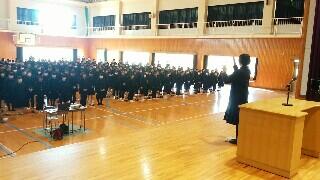 最後に、生徒会の提案で卒業式に向けて校歌の練習をしました。長時間座っていて寒かったこともありちょっと声が小さかったですが、卒業式当日は体育館に響き渡る校歌が聴けると思います。