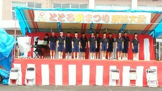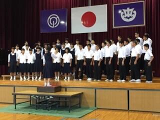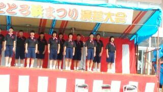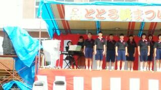 16日の「ととろ浜まつり」で、合唱部がオープニングに出演しました。吹奏楽部も出演する予定でしたが、雨が心配されたため合唱部のみの出演となりました。『われは海の子』『未来へ』『ドラえもんのテーマ』の3曲と、アンコールで『土々呂中学校校歌』を披露しました。