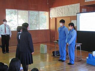 12月3日(金)、3年1組と3年4・8組を対象に「子どもたちに伝えたいこと(講師派遣事業)」が実施されました。講演してくださったのは、旭化成日向ハイポア工場の皆さん(3名)でした。