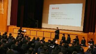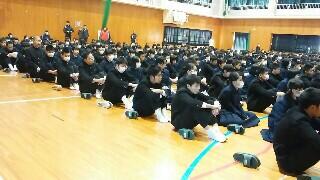 今日の3年生は、肩の荷が下りたんでしょうか、笑顔で登校してくる生徒が多かったです。でも、生徒集会には緊張感をもって臨んでいました。