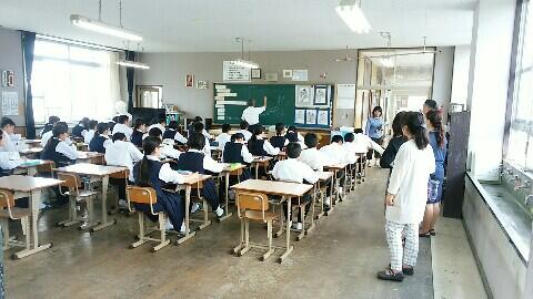 4校の小学校から60名以上の先生方が来校し、参観授業が行われました。1年生の教室がある南校舎は、つい最近まで小学生だったこともあり、多くの先生方が参観されていました。