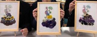 まずは、土々呂中の技術員・堀田さんが育てたパンジーの花を教頭先生や緑化委員会が手入れをして、その花びらをもらったので『花びらアート』を作りました。