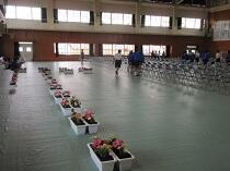明日の卒業式にむけて、1・2年生が会場設営、清掃等を行いました。式には参加できませんが、心を込めて準備をしました。