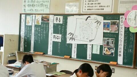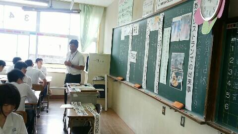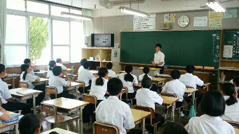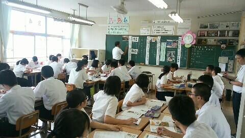 2年生は、今村教諭(本校2年目)が道徳の研究授業を行いました。主題名「勤労、公共の福祉」で、「ディズニー そうじの神様が教えてくれたこと」(ソフトバンククリエイティブ)を通して、社会貢献と勤労に対する意義について考えました。