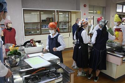 本日は1年2組の家庭科で調理実習を行いました。魚の煮込みとほうれん草のおひたしを作りました。魚は煮崩れしないように落としぶたを上手に使い、ほうれん草は味が薄くならないようにほどよく絞りました。とてもおいしくできあがりました。はげまし隊の皆様にもご支援いただきました。ありがとうございました。