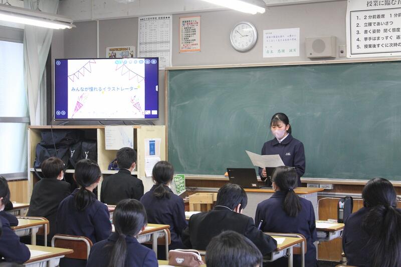 本日の午後、1年生はドリプラ(ドリームプラン)の発表会を行いました。一人ずつ将来の夢、やりたいことをクラスメイトの前でプレゼンしました。人前で発表するので緊張した生徒もいたようですが、自分の夢ややりたいことを上手に伝えることができました。それぞれの夢に向かってJump!