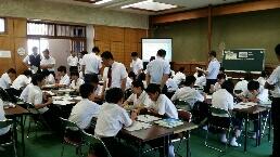 延岡市民体育館にて、県の学体研に向けての事前研究会が行われ、本校の2年2組が今村大介教諭の保健の授業を受けました。