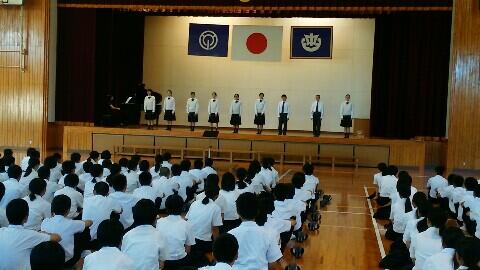 9人という少ない人数でしたが、体育館の静寂の中にしっかりと声が通っていました。土々呂中学校の生徒もだいぶ刺激を受けたことと思います。