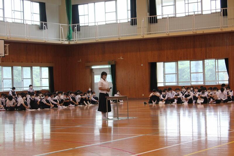 本日5・6校時に生徒総会が開催されました。2・3年生生徒と1年代表生徒は体育館、その他の1年生はリモートで参加しました。このような形態で実施するのはみんなにとって初めてでしたが、生徒会執行部、専門委員長・副委員長、議長団、生徒会会員のこれまでの準備のおかげで議事はすべて決議できました。自分たちで決めたことを最後までやりきり、全校生徒で笑顔あふれる土々呂中にしていきましょう。