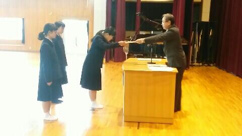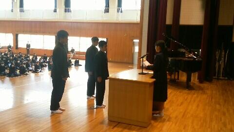 1年代表/甲斐ゆなさん、2年代表/池田みさとさん、3年代表/日髙だいすけさん、生徒会代表/小林りあさんが、2学期を振り返り発表をしてくれました。