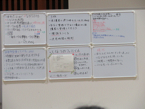 今後の共通実践としては、「携帯電話・タブレット端末の利用・SNS利用について」すべての学校でできる取組について考えました。