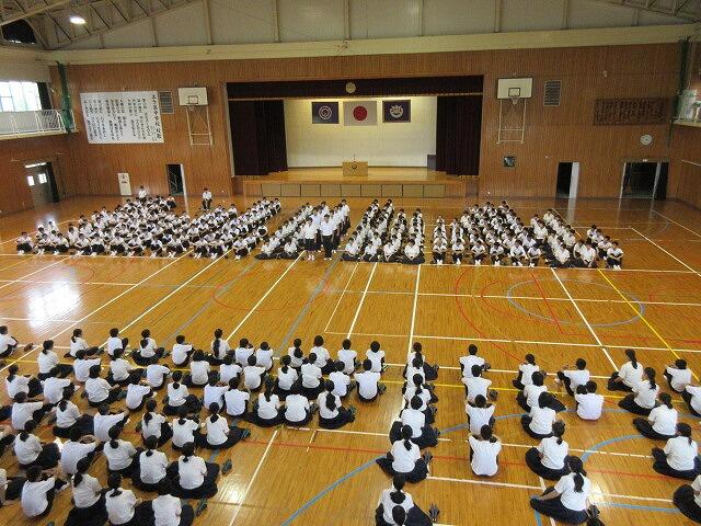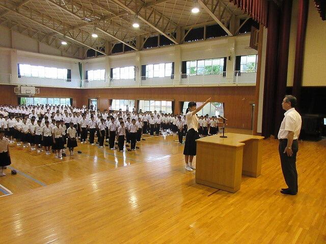 本日の6校時、明日9日から始まる「地区中学校総合体育大会」に向けての選手推戴式がありました。部活動キャプテン全員が素晴らしい決意表明をしました。