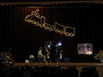 12月8日 宮崎県教職員互助会公益文化事業で、Aoi&Co.(アオイカンパニー)の「幻想~イリュージョン~」を観劇しました。宮沢賢治の「銀河鉄道の夜」をもとに、2人の少年の心の交流と成長にスポットをあてた物語でした。公演終了後には、ワークショップも行われ、発声練習や早口言葉、寸劇等も指導していただきました。