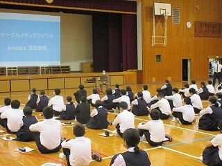 講師はケーブルメディアワイワイの濵田泰範氏。自分のふるさとで働く方のお話を聞き、職業の意義や地域社会に貢献する意味を学びました。