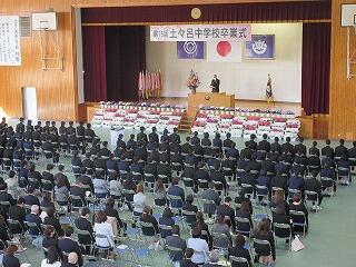 3月16日(水)、土々呂中学校第75回卒業式を挙行し、150名が卒業証書を授与されました。コロナ感染症対策のため、卒業生と保護者のみ参加の縮小版でしたが、厳粛な中にも感動のある卒業式となりました。
