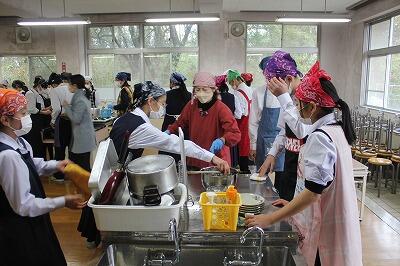 本日は1年2組の家庭科で調理実習を行いました。魚の煮込みとほうれん草のおひたしを作りました。魚は煮崩れしないように落としぶたを上手に使い、ほうれん草は味が薄くならないようにほどよく絞りました。とてもおいしくできあがりました。はげまし隊の皆様にもご支援いただきました。ありがとうございました。