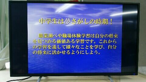 職場体験学習は、門川町や延岡市内のいろいろな仕事場にお世話になります。来週、28日から30日の3日間、生徒が体験学習をしていますので、よろしくお願いします。