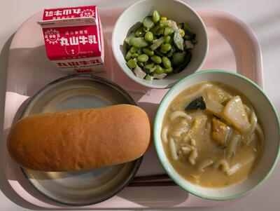 今日は、かぼちゃ汁をいただきました。かぼちゃが甘く、具沢山で美味しかったです。