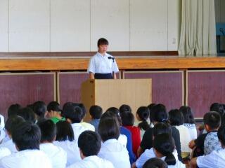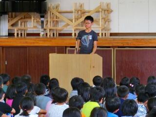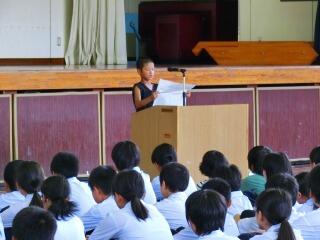 終業式では、小学部(2名)、中学部(1名)の代表が、1学期の反省、2学期の抱負を述べました。
