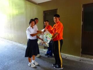 みんなで集めたペットボトルのキャップをむかばき青少年自然の家に持って行きました。