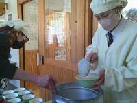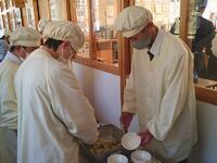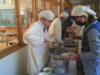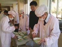 あったかい作りたてのお料理を校長先生や教頭先生方にも持ってきてくれて、ありがとうございました。校長先生が「とってもおいしかったです」と言いに来てくださってみんな嬉しそうでした。自分たちの分もお茶碗によそって、おみそ汁をつぎ分けて完成です!「いただきます」の声で食事がスタートしました。自分たちで作った料理は格別の味でしたね。家に帰ったら、お家のひとにも、ぜひ作ってみましょう。