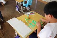 1年生は、算数の授業でまとまりのある数を数え棒を使って学習をしました。「59」や「82」の数を先生が言うと、素早く数え棒を並べていました。大きな数について考えることができるようになった姿をみることができました。