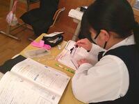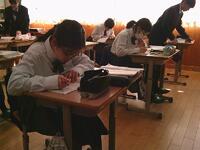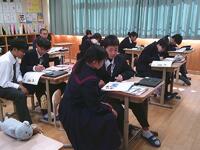 中学3年英語の授業では、来週に控えた県立高等学校推薦入試に向けて、過去の問題に取り組みました一問一問を大切に考え、分からないところは先生に確認しながら理解を深める姿が見られました。本番に向けて、落ち着いて実力を発揮できるよう、着実に準備を進めています