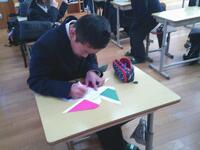 昨日に引き続き、メッセージカードづくりに取り組みました先生たちに相談しながら、色づかいやレイアウト、言葉の選び方など、さまざまな工夫を重ねる姿が見られました。一人一人が思いを込めて考え、より素敵なカードに仕上げようと意欲的に活動する様子が印象的でした