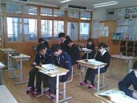 明日に県立高校推薦入試を控え、3年生はこれまで学習してきた内容を生かし、総合問題や応用問題に意欲的に取り組みました基礎を大切にしながら、少し難度の高い問題にも挑戦し、丁寧に考える姿が見られました。教室には、互いに刺激を受け合いながら集中して学習に向かう、落ち着いた雰囲気が広がっていました。これまで積み重ねてきた努力を信じ、明日は自分の力を発揮してくれることを願っています