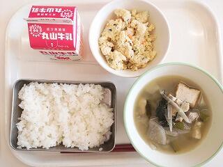 今日は、炒り豆腐をいただきました。椎茸や鶏肉などのうま味も出ており、ごはんに合いました。今が旬の小松菜のごまあえも栄養満点で美味しかったです。