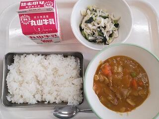 今日は上南方小中学校中学部のリクエスト献立で、ビーフカレーの登場でした!「最近カレーが出てないから、今日のリクエスト献立は絶対カレーだと思いました!」「ビーフカレー、辛いけどうまい!」と、いつもより食べるスピードが速い子ども達でした♪