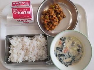 今日は、肉味噌ひじきごはんをいただきました。肉味噌たっぷりでごはんが進みました。