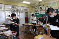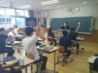 1年生は、国語ですうじの読み方や数え方を学習しています。布施先生がたくさん工夫をして、かぞえる歌などを使ったり、掲示をしたりして指導をしています。「にわとりは何と数えるのかな?」すると「いちわ、にわ」としっかり答える子どもたち。「お本はどうかな?」「いっさつ、にさつ」と。素晴らしい答えにこれからが楽しみになりました。