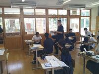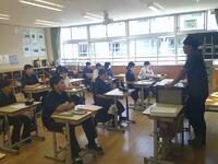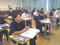 中学3年生の道徳の授業では、一枚の写真を通して学ぶ時間をもちました。校長先生のご指導のもと、生徒たちは写真に映る状況をじっくりと見つめ、自分の感じたことや考えを話し合いました。身近な生活のことだけでなく、世界で起きている現実にも目を向けることの大切さを、生徒たちは改めて感じることができたようです。写真を通して考える時間は、心の視野を広げる貴重な体験となりました