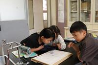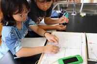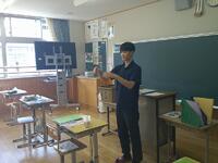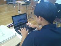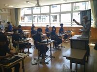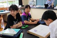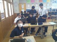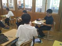 どこからともなく笑い声やはつらつとした子どもたちの声が聞こえてきます。それは理科室からでした。陣先生の理科の授業を受けていました。今日の学習は、方位磁石についてを学んでいました。使い方を実際の方位磁石を触って学ぶことはもちろんのこと、ICTを活用した指導方法がとても興味深いものでした。タブレット画面を操作することで、子どもたち1人1人に方位磁石の操作方法を身につける有効な手立てとなっていて、子どもの目の輝きが違いました!