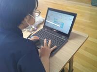 中学2年生の社会科の学習で、「北海道の人々のくらしの工夫」について調べました。タブレットを使って、冬の寒さや雪の多さの中で、どのように生活しているのかを調べました。二重窓や風除室などの家の工夫、道路に雪をためないためのロードヒーティングやすべり止めの砂の工夫などに興味をもって調べていました。また、雪が積もらないように、屋根の形をとがらせて雪を落としやすくしたり、信号機を横ではなく縦にして雪がたまりにくくしたり、雪や寒さに負けないように、家や道路、くらしの中にたくさんの工夫をしているという発見がありました