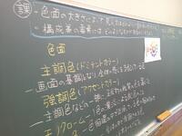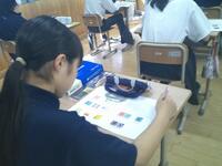 中学1年生の美術では、「色面の大きさによって見え方が変わる」ことをテーマに学習を進めています。授業では、作品の中で主調色(全体の印象を決める色)と強調色(ポイントとして目立たせる色)を使い分けることで、色の印象がどのように変わるかを体験しました。生徒たちは、「赤を少し加えただけで、ここが目立つ!」と面積と色の関係に驚いた様子でした