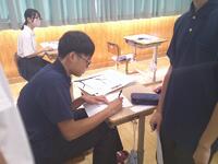 本日、1年生は書写の時間に取り組みました。はげまし隊の先生にも来ていただき、丁寧なご指導を受けながら、次回の清書に向けて練習を重ねました。生徒たちは「もっと上手に書きたい!」という思いを胸に、一画一画に心を込めて筆を運んでいました。練習を積み重ねることで、文字の形や姿勢も整い、清書への期待がふくらんでいます