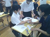 社会科の授業では、地方自治のしくみについて学びました授業では「オンブズパーソン制度」なども取り上げ、市民の声を行政に届ける仕組みや、その具体的な役割について理解を深めました。生徒たちは、この制度があることで、市民が安心して意見や苦情を伝えられること、そして行政が市民の立場に立って公正に判断することの大切さに気づきました。また、ただ制度を知るだけでなく、日常生活の中で自分たちの意見や思いを伝えることの意義についても考えるきっかけとなりました