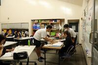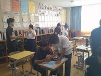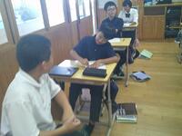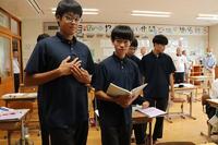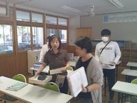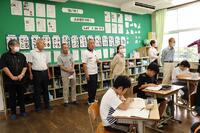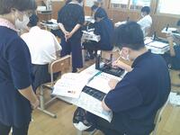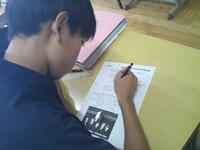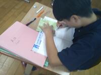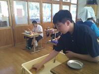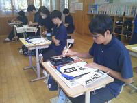 中学1年の書写の時間では、『天地』の清書と「いろはにほへと・・・」の文字を一文字一文字、丁寧に練習しました。落ち着いた教室の中、子どもたちは筆の運びや字の形に意識を集中させ、ゆったりとした時間の中で文字と向き合っていましたいつも「はげまし隊」の先生が、やさしく励ましながら、細かい点まで丁寧に指導してくださいます