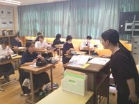 中学3年生は、英単語テストに向けて、休み時間を活用し、友だち同士で問題を出し合いながら最終確認に取り組んでいました。「これはどういう意味だっけ?」「スペルはこうだったよね」と声を掛け合う姿からは、仲間と一緒に学ぶ楽しさと心強さが伝わってきます。一人で黙々と勉強するだけでなく、友だちと確認し合うことで、記憶がより確かになり、自信へとつながっているようです。学び合いの雰囲気の中で、互いに励まし合いながら目標に向かう姿勢は、まさに受験生としての大切な力を育んでいると感じました