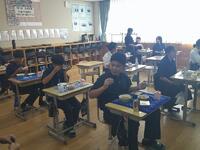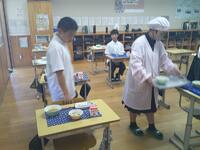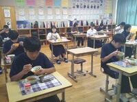 毎日の給食時間、配膳から後片付けまで、みんなで協力して取り組んでいます。給食を食べ終えた後も、食器を片づけたりと、一人ひとりが役割を果たす姿が見られます。おいしい給食を作ってくださる調理員の方々への感謝の気持ちを大切にしながら、これからも仲間と力を合わせ、気持ちよく食事の時間を過ごしていきたいと思います