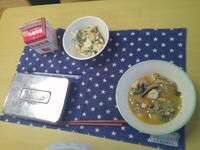 今日の給食の献立は、沖縄の郷土料理「マーミナーチャンプルー」をいただきました。ほうれん草やにんじん、豆腐などが入った彩り豊かな一品で、素材の旨味と程よい塩気がごはんとよく合います。「マーミナー」とは沖縄の方言で「もやし」のことです。〈マーミ(豆)〉また、野菜のごま味噌マヨネーズ和えは、甘めの味噌とごまの香ばしさがマヨネーズと絶妙に絡み、野菜のシャキシャキ感と相まって食欲をそそりました今日もバランスの良い元気が出る給食でした